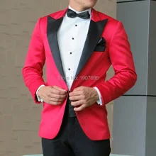 .Gallery of Red Wedding Mens Suits 2018 Slim Fit Groom Tuxedos Peaked Lapel Two Piece Jacket Pants Custom Made Male Blazer
