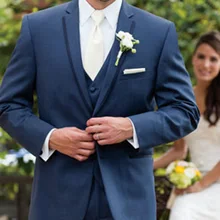 Buy Navy Blue Business Party Men Suits Notched Lapel Two Button Three Piece Wedding Groom Tuxedos 2018 Jacket Pants Vest up to 2019-03-23, and You will Save US $29.69 or 27%, Becuase You Just Pay for not Full Price for 94.00