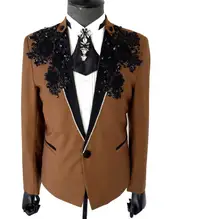 Addition Information of Brown men suits designs masculino homme terno stage costumes for singers jacket men sequins blazer dance star style dress punk